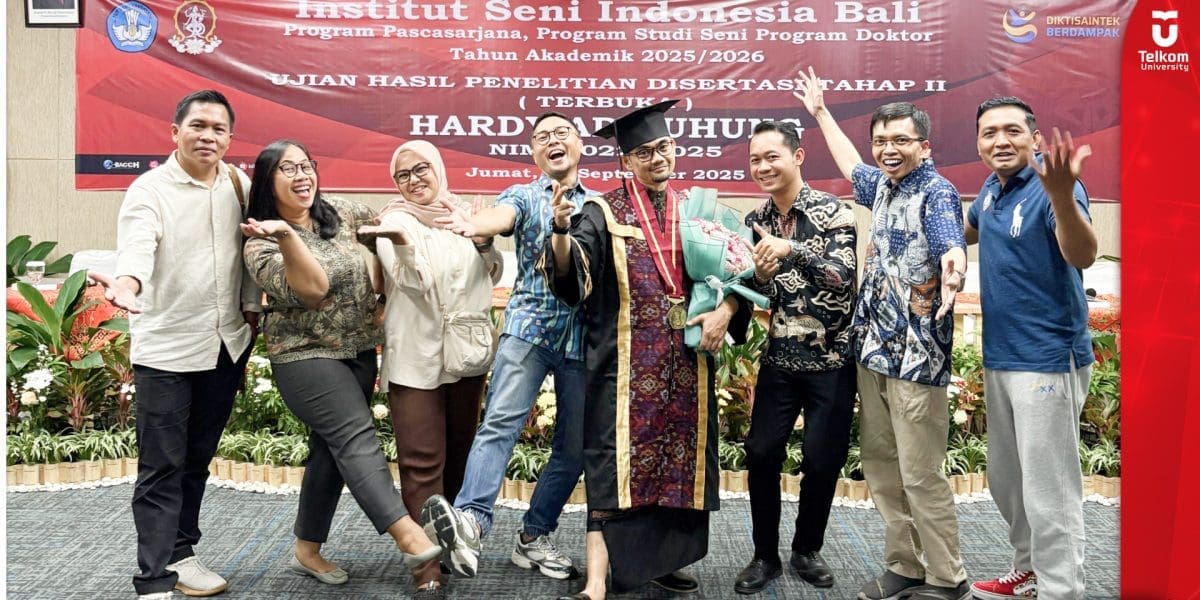 Bandung, 1 Oktober 2025 – Telkom University (Tel-U) kembali memberikan prestasi membanggakan. Dosen Program Studi S1 Desain Produk, Fakultas Industri Kreatif (FIK) Tel-U, Dr. Hardy Adiluhung, S.Sn, M.Sn., resmi meraih gelar Doktor usai menjalani Sidang Promosi Doktor di Institut Seni Indonesia (ISI) Bali pada Jumat (26/9) 2025.